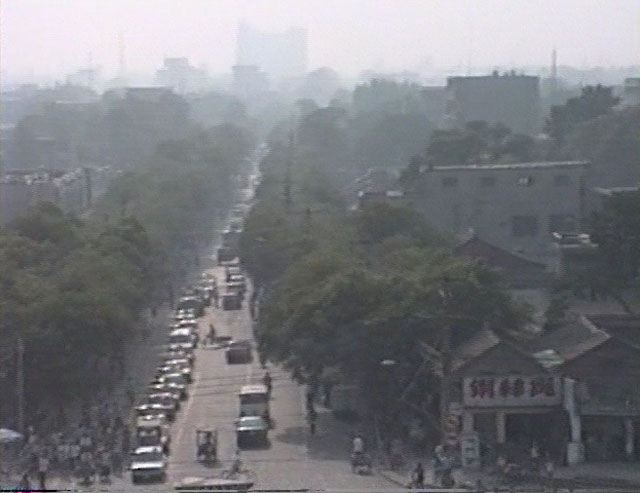 西の城門から始まるシルクロードは街路樹の中に消えていた
