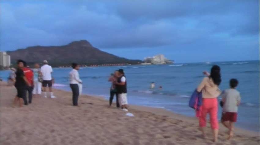 ワイキキビーチに人は多いが泳いでいる人は少ない