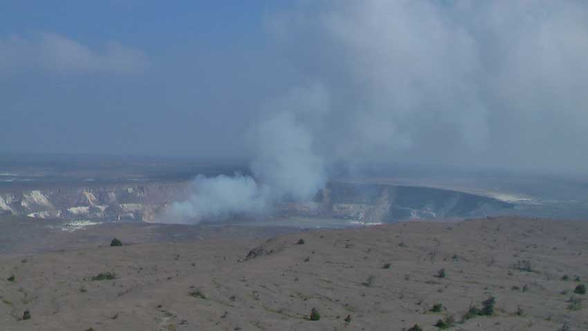 キラウエア火山の火口 ここでは噴煙だけがあがっている