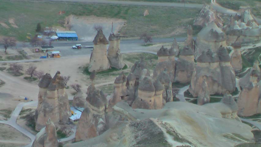 きのこ岩が林立するパシャバーの上空を過ぎる