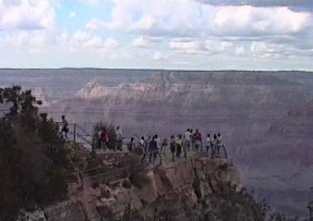 観光客は崖の上から景観を楽しむ