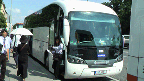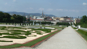 早速バスに乗換え観光に向かう。最初はベルベデーレ宮殿だった。左右対称と薄緑の色彩が、まるで模型のような美しさを放っていた。裏に回ると、これまたすばらしい眺望で、うっとりと眺めてしまった。