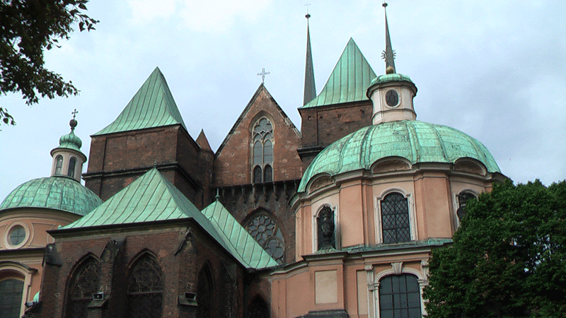聖ヤン大聖堂の一部 高く聳える二つの塔は向こうに小さく見える