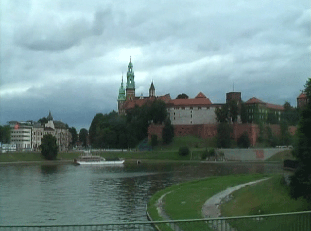 ヴァヴェル城が少し見えるクラクフに入る