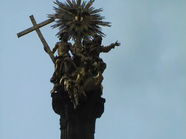 三位一体の碑の上部 父と子と精霊が輝いている