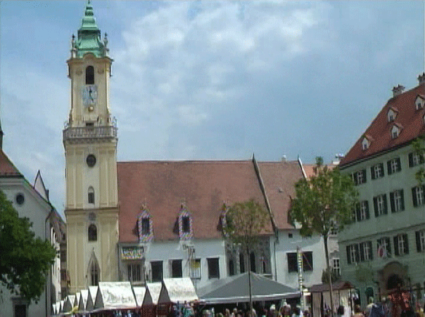 旧市庁舎塔と日本大使館(右の建物)