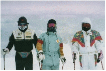 ゴンドラの終点から約5kmほどのコースを滑って楽しんだ。途中吹雪になったりしたので、フェイスプロテクターを買ったりした。要するに覆面のできる筒になったマフラーといったものだ。これでずいぶんあたたかくなった。