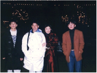 4人で夜の町を歩く