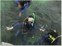 学科が終わると早速、まずはプールでの実地訓練に入った。初めてウエットスーツを着て、酸素ボンベを背負って、思い鉛のウエイトを腰に締め、重々しく歩いてプールに入る。水の汚い小さなプールでだったが、緊張してそんなことを問題にしている場合ではない。レギュレーターから空気を吸いながら、マスククリアー(水中眼鏡に入った水を除去すること)の練習をした。