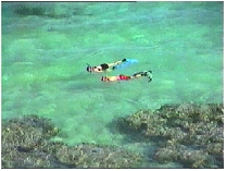 早速海に入り、シュノーケリングで綺麗な海の中を見ながら泳ぐ。ダイビングで見たより大きい魚までいて、シュノーケリングの名所として面