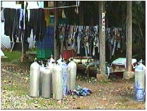 ダイブショップのレンタル用の酸素ボンベやスーツ
