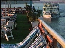 昨夜は10時頃には眠ったので、今朝は爽快に目が覚めた。早速モンタッスル号のデッキに昇って、朝日を浴びながら周りの風景を眺めた。