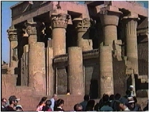 コム・オンボ神殿は、入口や至聖所が2つずつあり、2つのグループの神を祀ってあるという。この神殿の圧巻はその石柱の太さと多さだ。込み入って建っているのでとても重量