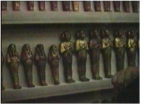 ツカンカーメンのマスクに見入る辰子 ツタンカーメンの墓の召使いの401体の像