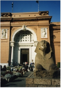 エジプト考古学博物館の正面玄関 ツタンカーメンのマスクと私