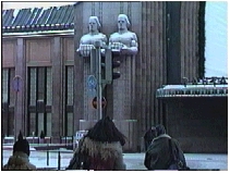 今日は午前中フリーなので、朝食後、子供たちとは別行動で、辰子と二人、巨大人物像4体が灯りを捧げるユニークなヘルシンキ中央駅を写