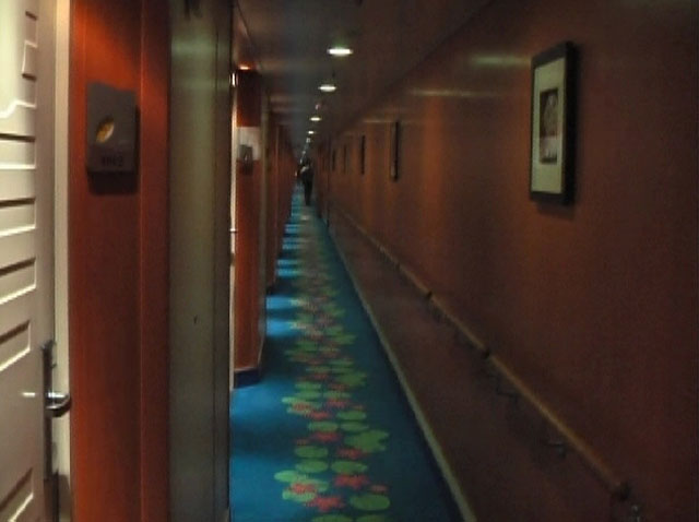 プライド・オブ・アメリカ号に戻って船内を移動する、廊下の長さも半端じゃない
