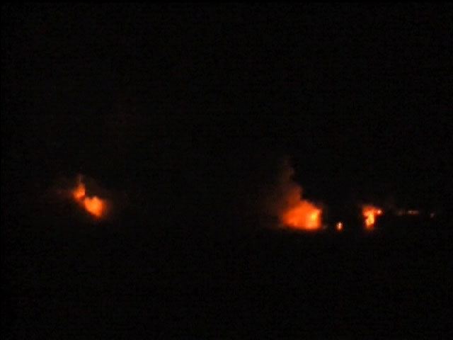 キラウエア火山の溶岩がはるばる流れて、海に流れ込み、水蒸気爆発を起こしている夜景が見えた