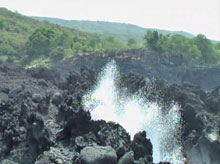 コナに着くと、案内所でレンタカー会社の道順を尋ね、小さな事務所で小型の車を借りた。白い車で乗りやすかった。なぜかいつもフォグランプがついている。レンタカーだといつでも好きなところに停めて観光できるから便利だ。最初は「潮吹き」というマウナケアから流れ出た溶岩と太平洋の荒波がぶつかり合ってしぶきを上げているところに行った。このあたりの溶岩の流れは半端ではない。見渡す限り真っ黒な溶岩ばかりだ。