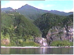 標高1562mの硫黄岳とカムイワッカの滝 標高1660mの羅臼岳は威容を誇っている 遙か彼方にかすかに国後島が見える 羅臼の名所 オーバーハングの岩の奥にあるヒカリゴケの拡大写真