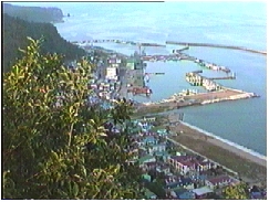 高台から見下ろす羅臼の港は穏やかだった 知床峠にある熊の湯という露天風呂は熊が出てきそうな山の中だ 宇登呂のホテルの窓からオホーツク海に沈む夕日を眺めて感激した 好天に恵まれて知床五湖巡りをする