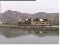 途中湖の中にジャル・マハルという美しい宮殿が見えた。今は廃墟になっているらしいけれど、背景に静かな山なみを従え、湖に浮かぶ姿は美しい。