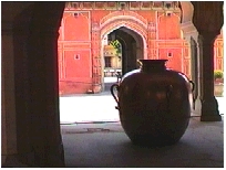 特別謁見の間の入口にある巨大な銀の壺は、マハーラジャがイギリスへ旅行した際に、ガンジス川の水を入れて運んだものだという。世界一大きな銀製品だということだ。