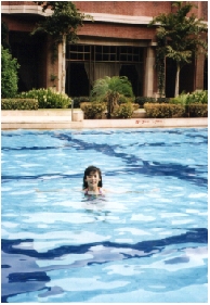 ホテルのプールで楽しむ辰子