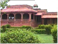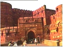 アクバル王がムガール帝国の権力の象徴として築いた城で、宮殿やモスクの他、ヤムナー河の流れの彼方のタージ・マハールがひときわ美しく見える景観がすばらしい。