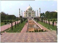ごみごみした町を走って、この旅で一番期待を寄せていたタージ・マハールに着いた。遠くから白いドームが見えたとき、思わず胸がときめいた。遠くからでもその清楚で端正な様子がうかがえる。少し手前でバスを降り、多くの観光客の行き交う中を歩いて、タージ・マハールに近づいていった。