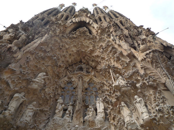サグラダ・ファミリアの正面の真下から見上げる