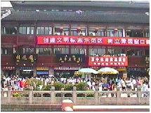 昼食後は上海の代表的観光地の豫園に行った。古風な建物が印象的で、中は大商店街といった部分と、古式庭園といった部分に分かれていた。商店街にはありとあらゆる物があって、中国の人が先を争うように買い込んでいた。また奥の庭園部分には立派な楼閣も多くあり、庭園とよく調和していた。