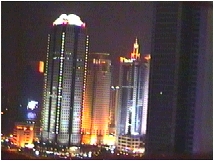339mの展望台まで登った。そこにはすばらしい上海の街の夜景が展開していた。黄浦江という川に沿って広がる上海の外灘といわれるあたりの林立するビルが、煌めく夜景を形作っていた。