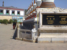 今日いよいよ西寧から観光が始まる。洋食のバイキングで朝食を済ませ、専用バスに乗り込む。朝からかんかん照りで、紫外線が強そうだ。帽子とサングラスを利用するように注意がある。ホテルの周りはもう朝早くから露天商の人が果物や線香代わりの柏の枝を乾燥させたものを売っている。人々は散歩がてらそれらを買って帰っていく。道ばたで牛乳を、絞ったままの集乳缶からいきなり買い手の瓶に移して売っていた。