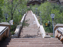 北禅寺は西寧の町はずれの山の崖に建てられていた。垂直の崖にも伽藍がいくつもあって、そこまで昇る階段が急なことと言ったらない。