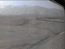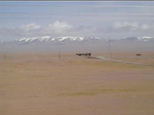 さらに列車は高度を上げて、永久凍土地帯を走る。そして海抜4600mの崑崙山トンネルを抜けるとココシリ(可可西里)自然保護区に入る。この自然保護区には中国第一級の保護動物チベットカモシカやチベット野ロバ、蒙古ガゼルなどがいるそうだが、実際に目にしたのは野ロバ20〜30頭の群れのいくつかだった。ここでは鉄道も国道もこの自然保護区の中を走る。彼方には遠く崑崙山脈が横たわり、果てしなく広がる草原の眺めはすばらしい。