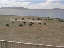 | そのことは忘れるとして、車窓の風景には癒される。放牧されているツォナ湖畔のヤクの群れがなんともいえずのどかで、これぞチベットという感じだ。 | |||||||||||