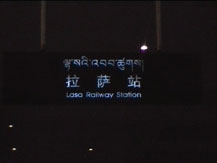 ネンチンタングラ山脈に感動して写真を撮った後、にわかにみんな眠くなってとうとう全員眠り込んでしまった。従ってラサに着く直前の風景は何も知らない。ただ、ラサに近づいて下りる準備をしていて、菓子の袋が今にも張り裂けそうにぱんぱんにふくらんでいるのを見て、初めてこの車両は外気と変わらないことを知った。航空機並みの空調というのは最初のカナダ製の車両のことであって、どうやら中国製の車両はそこまでいっていないようだ。今まで知らないでよかったというのが実感だった。 ともあれ念願のラサ駅に到着したということで、夜十時を過ぎた暗いホームを歩きながら心を躍らせていた。なぜか駅のホームは真っ暗だった。
