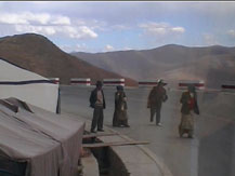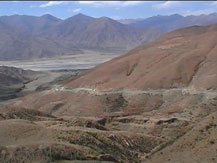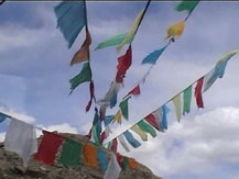 ところが、この峠を下り始めてすぐ、いやな現実に直面した。峠の頂上に土産物屋があり、記念写真用のヤクなども客待ちをしているのだが、我々のバスはそれを無視して頂上を少し行きすぎたところまで行って止まって観光し、そのまま帰ろうとした。ところが峠に一杯張られているタルチョという旅の安全を祈る五色の布のロープが垂れ下がっていて、バスに引っかかってしまった。バスを止めてガイドが崖を登り、ロープを引いてバスを通した。わざとロープを緩めて引っかけ、切れたロープの弁償をさせる手口で、500元(8000円)の請求をするのだという。あくどいやり方だ。しかし、何とかガイドが経験にものを言わせて切り抜けた。