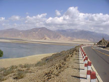 この河はヒマラヤ山脈の北側をずっと1000kmも東にたどらされ、やっとヒマラヤの東の果てで南に下り、プラマプトラ河となってガンジス河に合流する。このヤルツァンポ河こそチベットの大動脈であり、文明の母でもあるのだ。あまりにも川幅が広く、ひとたび砂嵐が起こるとその影響は計り知れない。川の砂が山に吹き上げられ、山の砂漠化が進んでいるのだ。その対策のために日本も協力しているのだとか・・・。思いがけない話だった。