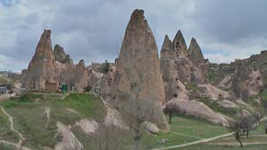 カッパドキアはエルジェス山の噴火でできた凝灰岩や溶岩層が風雨によって浸食されて、硬い岩が浸食を遅らせたために残った部分の奇形が世にも不思議な形を生んでいる。それがどこにでもできそうなのに、ここカッパドキアにしかないということに意味がある。それにその範囲が広いことも驚かれる。ただこの奇観が珍しいだけではアメリカのグランドキャニオンやモニュメントバレーに劣るかもしれない。カッパドキアは奇観だけでは無いのだ。抑圧から逃れたキリスト教の修道士たちが洞窟を掘って隠れ住み、見事な教会や修道院として利用した遺跡に価値があるのだ。