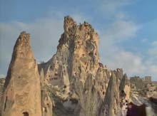 ボアズカレのハットゥシャシュとヤズルカヤを見て、また240kmも走って期待の大きかったカッパドキアに着いた。バスの窓から見える奇観に興奮した。写真では見ていたが、やはり近くで実物を見るのは迫力が違う。今日のところは序の口ということで、三姉妹の岩と、ウチヒサル城などを見て、明日の楽しみとした。