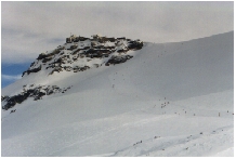 気を取り直して後半はフーリから今日もクラインマッターホルンへ登り、国境までの下りの途中にあるTバーリフトでチェルビニア側の最高点に行って見た。まるで地球の最高点に立っているようで、太陽が雪原に接している風景はこの世のものとは思えない神秘的な感じさえあった。